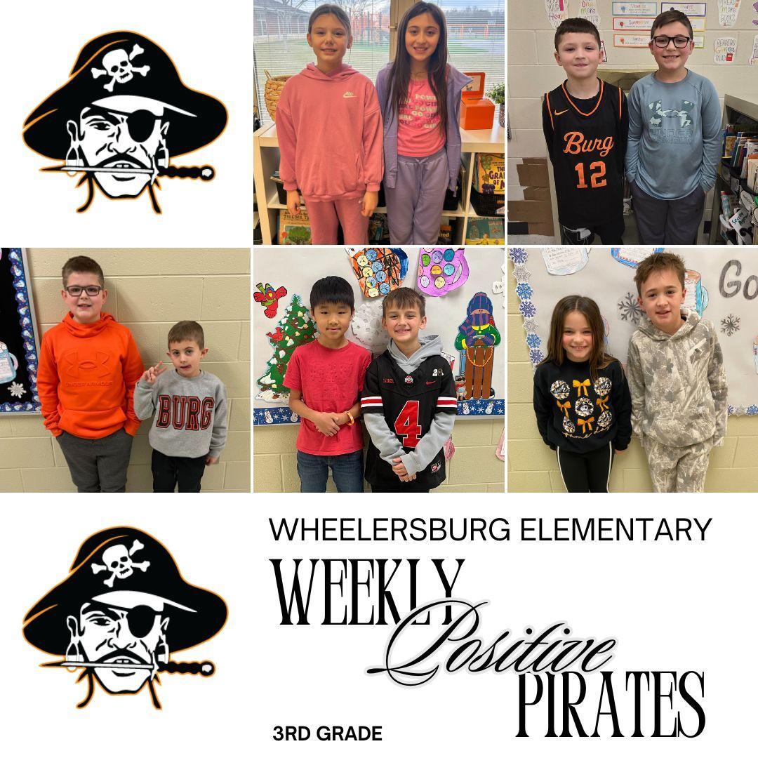 We are excited to celebrate our Positive Pirate winners for each grade level at Wheelersburg Elementary! These students have truly been sailing the wave by demonstrating positive behavior, making responsible choices, and showing kindness and respect to others throughout the school day.