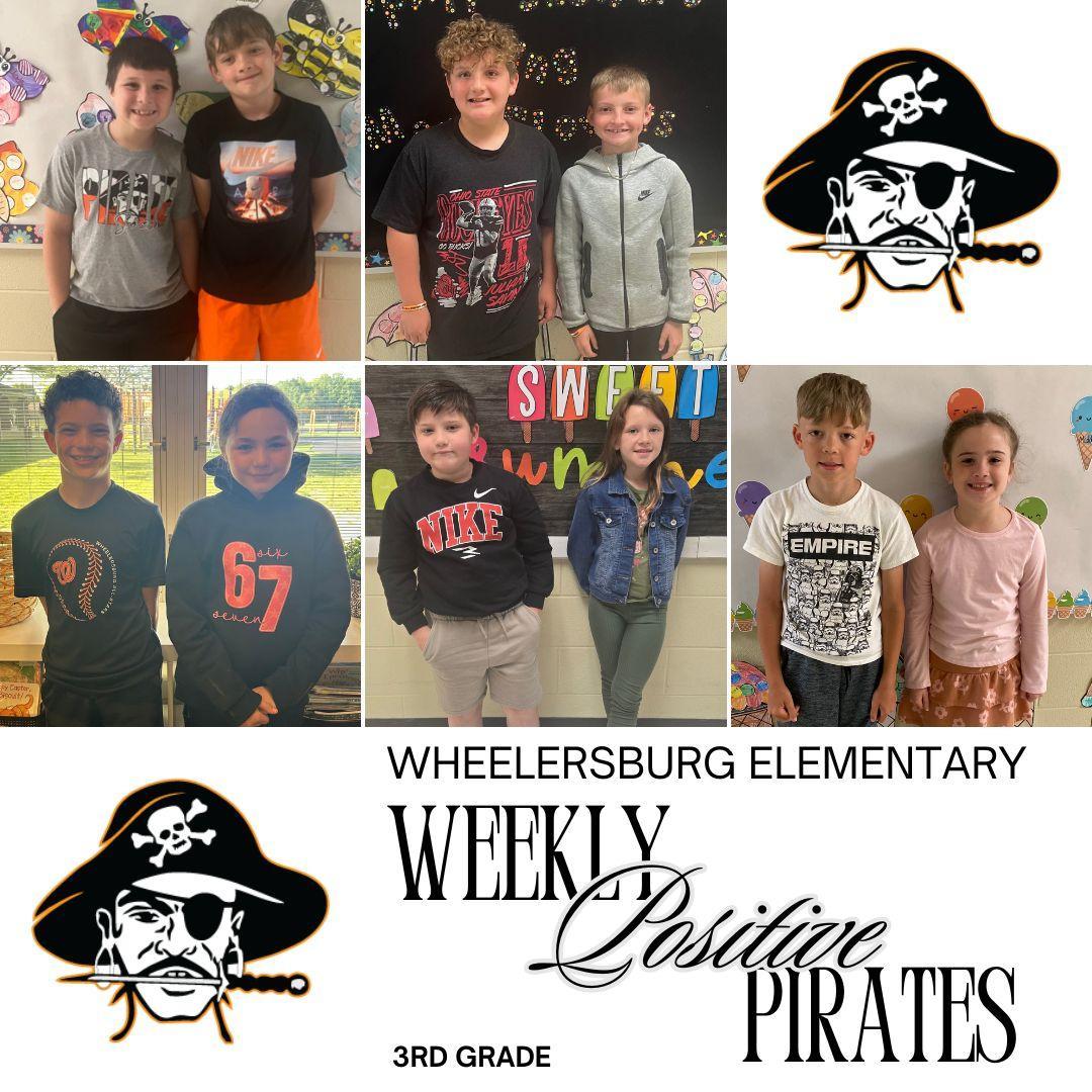 Congratulations to this week’s Positive Pirate Winners at Wheelersburg Elementary! These students have gone above and beyond to show kindness, responsibility, and what it truly means to be a Pirate every day.